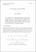 The solutions to a surprising number of mathematical questions can be classified by the ADE Coxeter–Dynkin diagrams. This snapshot will show you a selection of these questions and how they correspond to the ADE Coxeter–Dynkin diagrams.